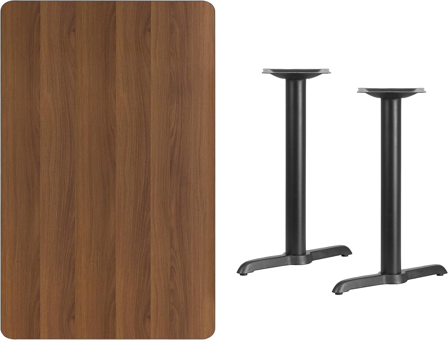Flash Furniture 30'' x 48'' Rectangular Walnut Laminate Table Top with 5'' x 22'' Table Height Bases